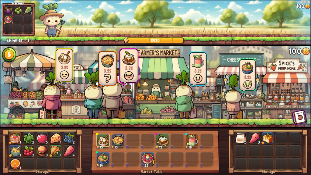 Toasty Turnip is a cozy farming & cooking sim where everyone’s a turnip! Grow crops up top, cook tasty meals down below, and sell them at your bustling market stall. Watch customers react to your pricing—too high and they’ll grumble, too low and you’ll go hungry!